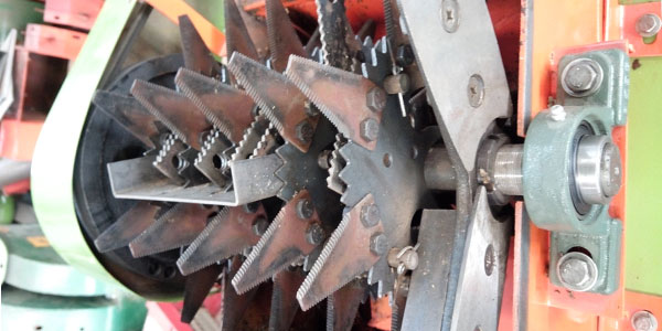 使用UC系列,由高碳鋼精密加工而成,可自動調節(jié)平衡,使用維修方便。并且主機輪加配重輪,增加配重,慣性大提高穩(wěn)定性省動力;刀片提高破碎率。