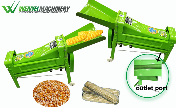 工作時,玉米由進料口喂入,玉米通過螺旋推進軸運轉(zhuǎn)和滾筒內(nèi)的撞擊,使玉米粒和玉米芯完整分離,玉米粒從側(cè)面風口排出,玉米芯從脫粒機尾部排出,脫粒干凈,運轉(zhuǎn)穩(wěn)定。